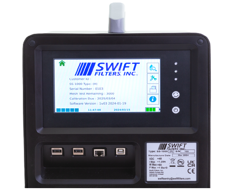 Swift Filters offers a fluid cleanliness monitor using proven mesh blockage technology designed to provide more accurate and reliable fluid cleanliness analysis over light extinction monitors for non-homogenous fluids including low viscosity and dark fluids.